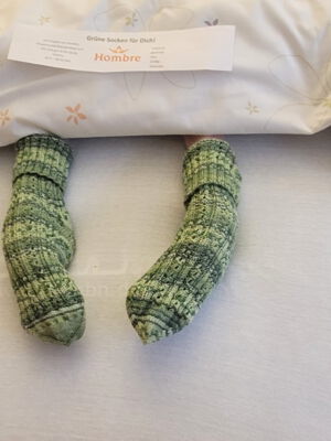 Grün steht für Mut, Hoffnung und Zuversicht. Socken wiederum sind ein Sinnbild für Wärme, Geborgenheit und Fürsorge. Wir glauben fest daran, dass jede einzelne gestrickte grüne Socke – oder Socke mit grünen Anteilen – einen kleinen, aber bedeutsamen Beitrag leisten kann, das Leben unserer zu Begleitenden ein Stückchen angenehmer zu machen.